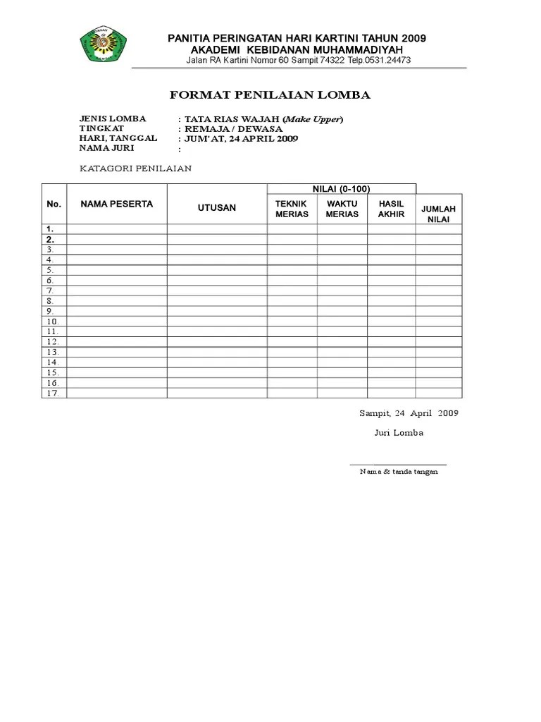Sumiyadi, m.hum./jurdiksatrasia, fpbs,upi kriteria penilaian lomba menulis puisi aspek kriteria dan skor 25 20 15 10 kelengkapan aspek . Format penilaian juri lomba membaca puisi smak negeri st. Kriteria penilaian lomba baca puisi · author / uploaded · rizqy rahmat hani . Thomas morus ende nomor undian 1 noaspek yang dinilairenta. Dengan kriteria penilaian sebagai berikut :