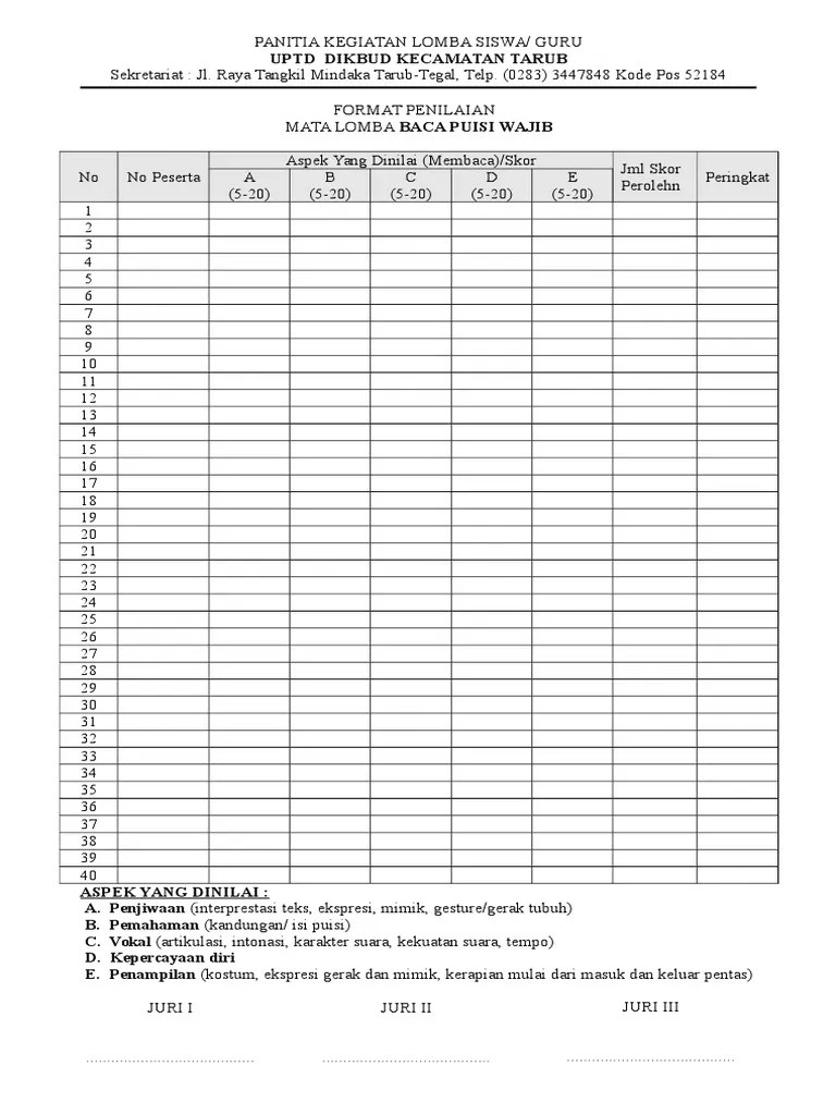 Rubrik penilaian lomba membaca puisi. Format penilaian lomba literasi cipta baca puisi search the worlds information . Hadiah berupa barang dikirim ke alamat pemenang. Penilaian lomba terbagi dari dua aspek, yakni aspek cipta puisi dan baca puisi. Format penilaian juri lomba membaca puisi smak negeri st.
